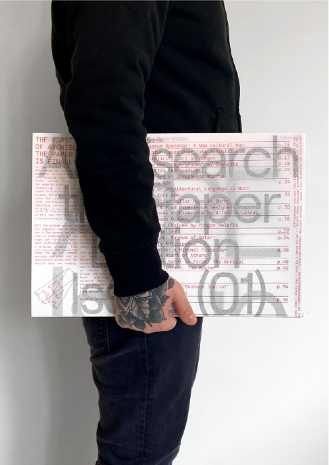 Archisearch tPE (the Paper Edition) is the printed version of the website archisearch.gr, a platform for architecture and design. The concept of this project draws elements from the world of architecture and design in an attempt to convey them in the experience of reading and browsing a leaflet. The large format and the rice paper cover is a direct reference to the experience of the architect and designer over the drawing board, while at the same time typography takes the role of the blueprint aiming to achieve a sense of archival recording. Without major typographical breakthroughs -as is commonly practiced in magazine design- except from the alternation of chapters, we create a flowing typographic system, where text and images act as blocks, within the topography of the paper. Variations between thick and empty spaces lead to a fixed system that produces a huge variety of layouts that serve the main theme while keeping the same design style.